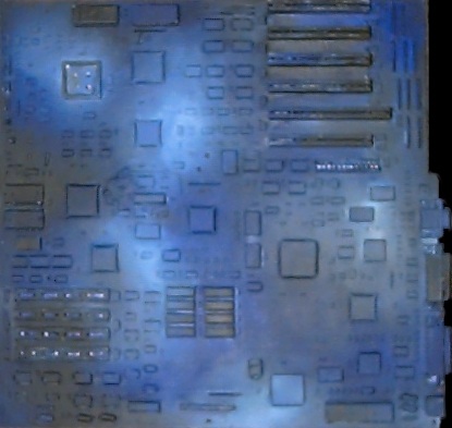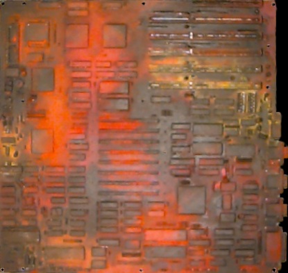 color study using non-standard materials. Oil on motherboard (Telex286). 15x14"